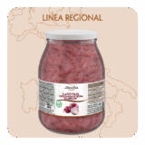 Red onions originally from the town of Tropea, where the soil and the proximity to the sea make it possible to obtain an onion with well-defined characteristics: not only for its colour but also and above all for its particularly sweet flavour. Sliced and preserved in water. Suggestions for use: it is an excellent combination for the preparation of dishes based on fish (cod and tuna in particular) or meat (braised); it also lends itself well in savoury bakes for elegant and delicious pies; in first courses to reinvigorate the flavour and sweeten the acidity; in the pizzeria as a filling for gourmet pizzas or calzoni.