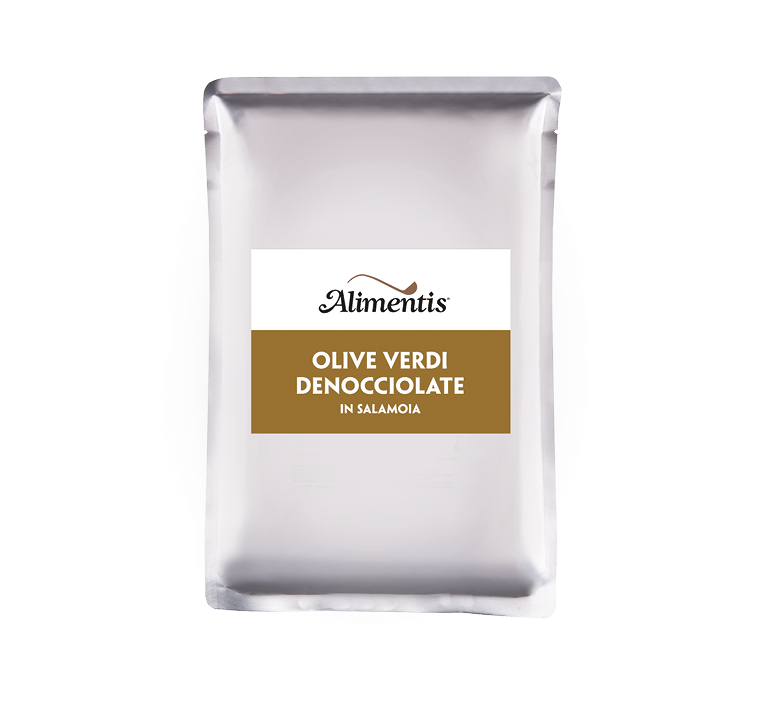 Pitted green olives, preserved in brine. Suggestions for use: to decorate pizzas and bruschetta, to stuff paninis and sandwiches, in the preparation of sauces and dips.