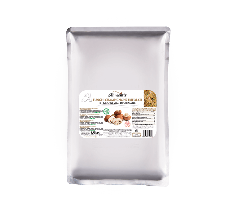 Fresh, dark in colour, cultivated mushrooms. Sauteed using a recipe that in terms of taste and aroma make them particularly suitable for topping pizzas and focaccia.